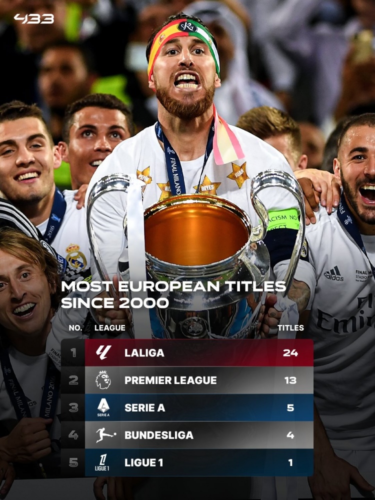 直播吧4月11日讯 媒体433统计了各联赛2000年以来的欧战冠军数量,并列出榜单,西甲24冠居首,英超13冠次席。